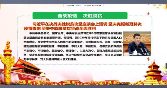 会议伊始,杨文瑞支部书记就最近的新冠病毒疫情防控情况做了简要的说明,并强调,全体党员要注意防范,积极配合所在地区的疫情防控工作;接着,杨文瑞支部书记带领全体党员学习习近平总书记部署疫情防控的系列重要讲话和决战决胜脱贫攻坚战座谈会上的重要讲话精神以及学习贯彻教育部、省委、省委教育工委及校党委关于疫情防控的相关部署和文件精神。