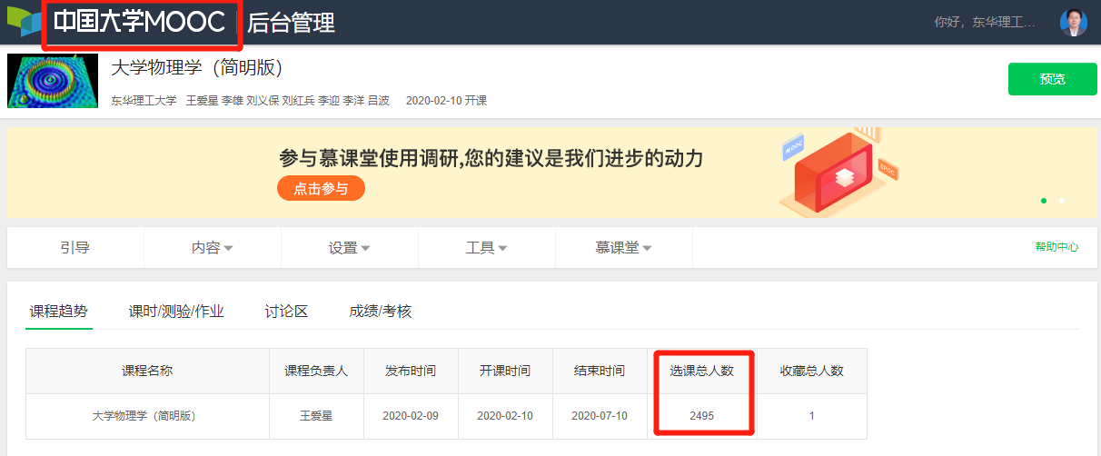 据悉,这只是在疫情期间,受益于我校大学物理课程教学团队录制上线的《大学物理学》MOOC课程的学校之一,该MOOC课程除了在本校大学物理教学中开展线上教学之外,还有郑州商学院、南阳理工学院、北京电子科技职业学院、焦作师范高等专科学校、安庆师范大学、北京服装学院、天津城建大学、衡阳师范学院、郑州科技学院、重庆师范大学、南京森林警察学院、齐齐哈尔大学、东华理工大学长江学院等17所高校,共计9000余学生参与线上选课学习,大约1万次学习互动,学银在线平台累计有155多万次页面浏览量。至2018年12月该MOOC课程在中国大学MOOC和学银在线平台上线运行以来,参与线上选课学生共计16000多人。