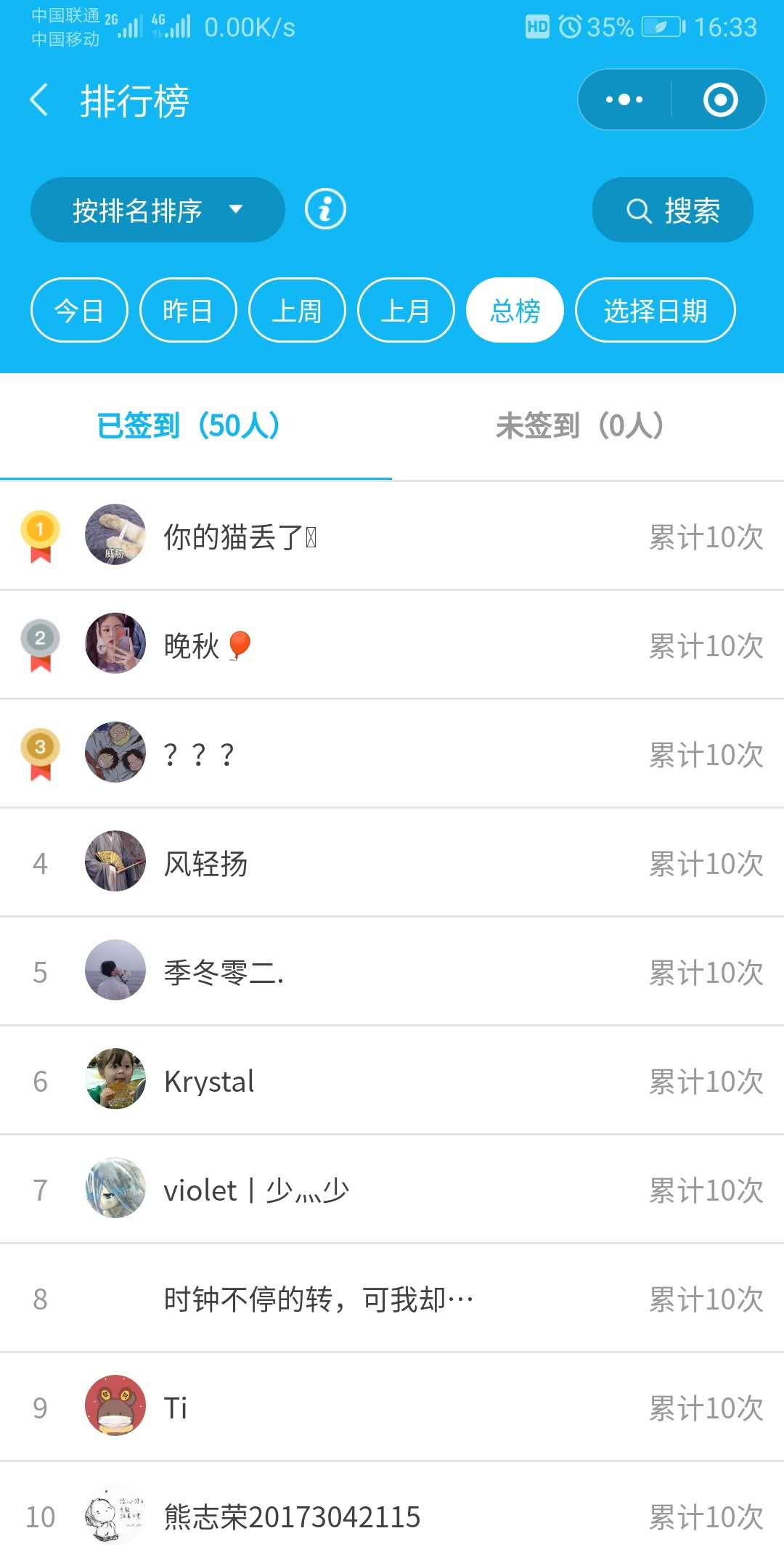 2.上课前学生在微信上小程序上面进行签到,设置了开课前五分钟至开课后五分钟共十分钟的时间让同学们签到。