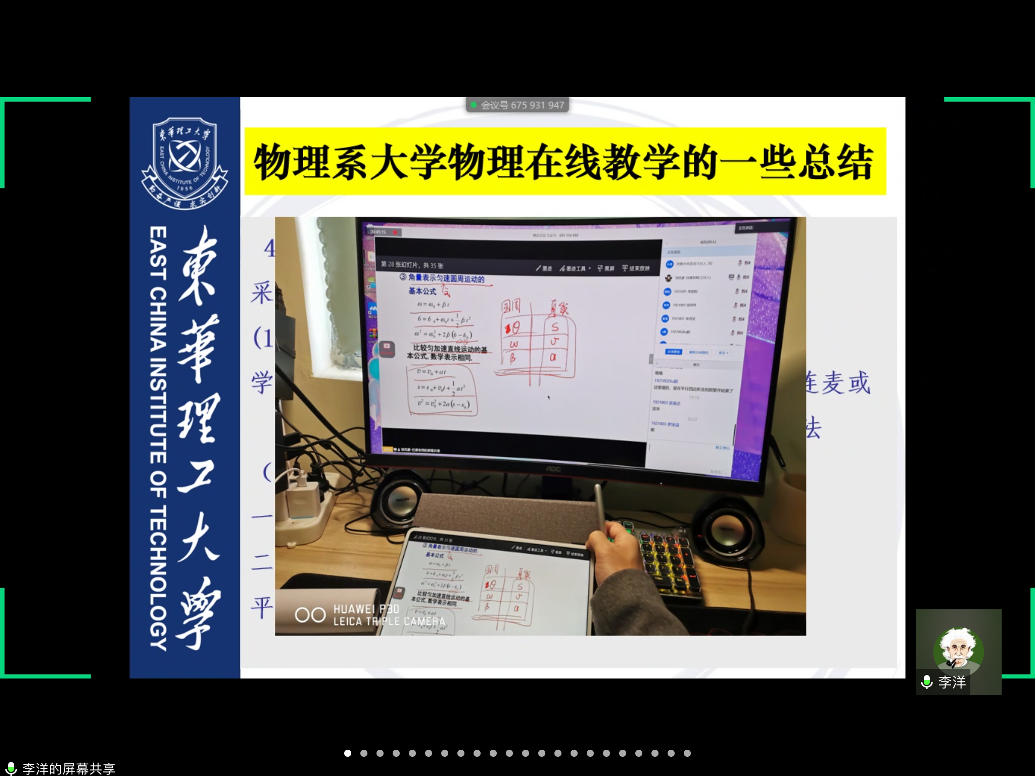 3月24日下午,为总结线上教学经验,探索构建线上高效课堂,提升教师教学效果,保障学生学习质量,理学院举办主题为“构建公共基础课线上教学高效课堂”的教学论坛。本次论坛由副院长李迎主持,论坛邀请学院督导组组长乐励华教授、大学数学主任杨志辉、物理系主任李洋以及青年教师代表朱琳、章世晅、李雄、杨冉等作了线上主题汇报,分享线上授课的教学设计与高效课堂构建的经验。