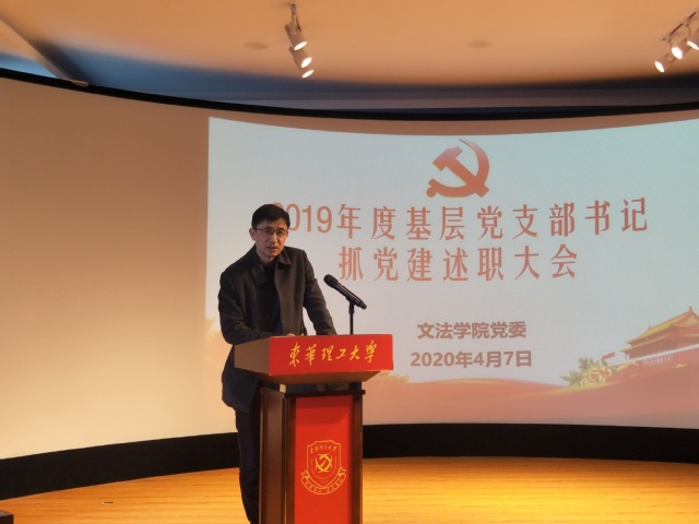 根据校党委的要求,4月7日下午,文法学院党委举行了2019年度基层党支部书记抓党建述职报告和评议会,学院班子成员、科级干部、辅导员、班主任及部分党员教工代表近40余人听取了报告并对支部工作进行了评议。会议由学院党委书记李儒俊主持。