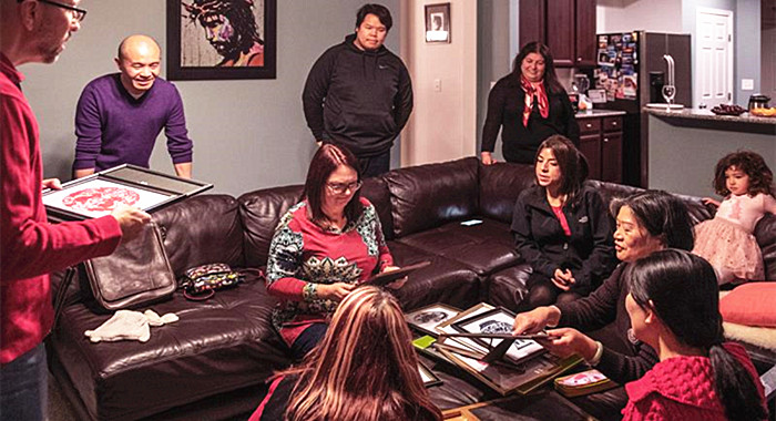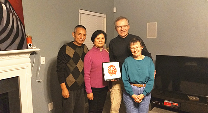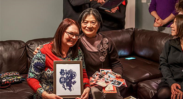 今年1月26日,孙丽萍女儿邀请了四个家庭朋友来家过新年(比国内晚半天,属大年初一)。饭后,这些美国朋友欣赏了孙丽萍的剪纸作品。言谈举止间,美国朋友对中国的剪纸艺术非常感兴趣。在相互交流中,孙丽萍还给这些美国朋友介绍了中国的剪纸艺术、中国的传统文化,并回答了他们提出的一些问题。