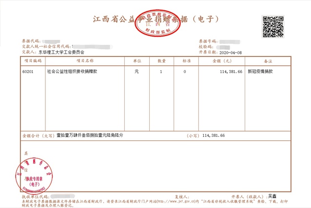 扶危渡厄、互帮互助是中华民族的优良传统。倡议发出后,短短一周时间,学校808位党外教职工捐款达114381.66元,其中6人捐款超过1000元。校工会于4月7日将捐款转入江西省慈善基金会捐赠专户,定向用于新型冠状病毒感染的肺炎疫情防控。此前,还有不少党外教职工自觉通过其他渠道捐钱捐物,奉献爱心。