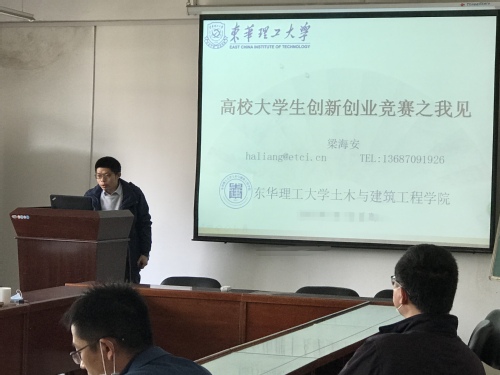 为做好第六届“互联网+”大学生创新创业大赛学院组织申报工作,进一步激发青年大学生创新创业热情,丰富学院师生创新创业知识,培养创新精神和创业意识,提高创新创业能力,学院于4月9日邀请创新创业学院党委书记王合义为学院本次“互联网+”全国大学生创新创业大赛做专题培训讲座。土建学院党委副书记李明东、各系主任、实验室主任、学院竞赛组织负责人及学院在校教师参加培训。