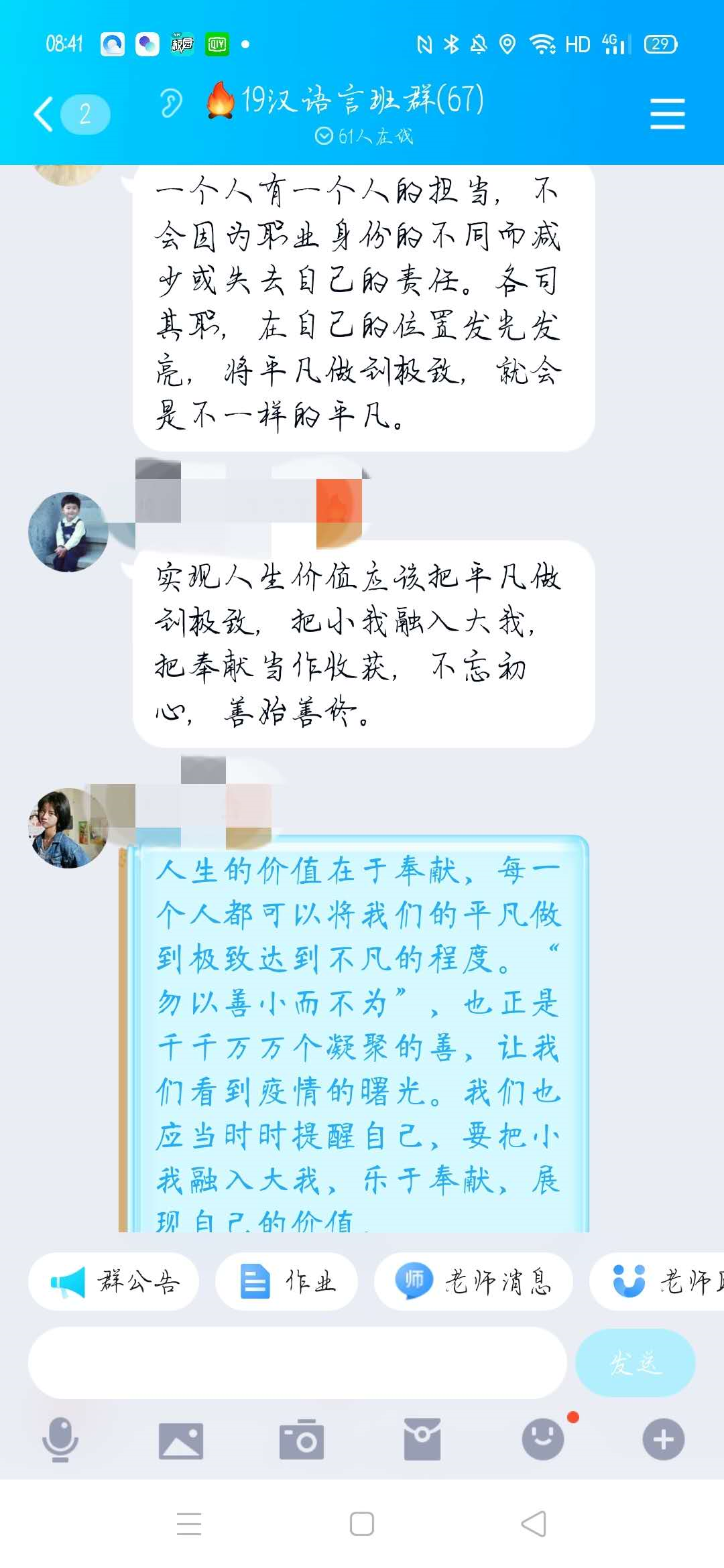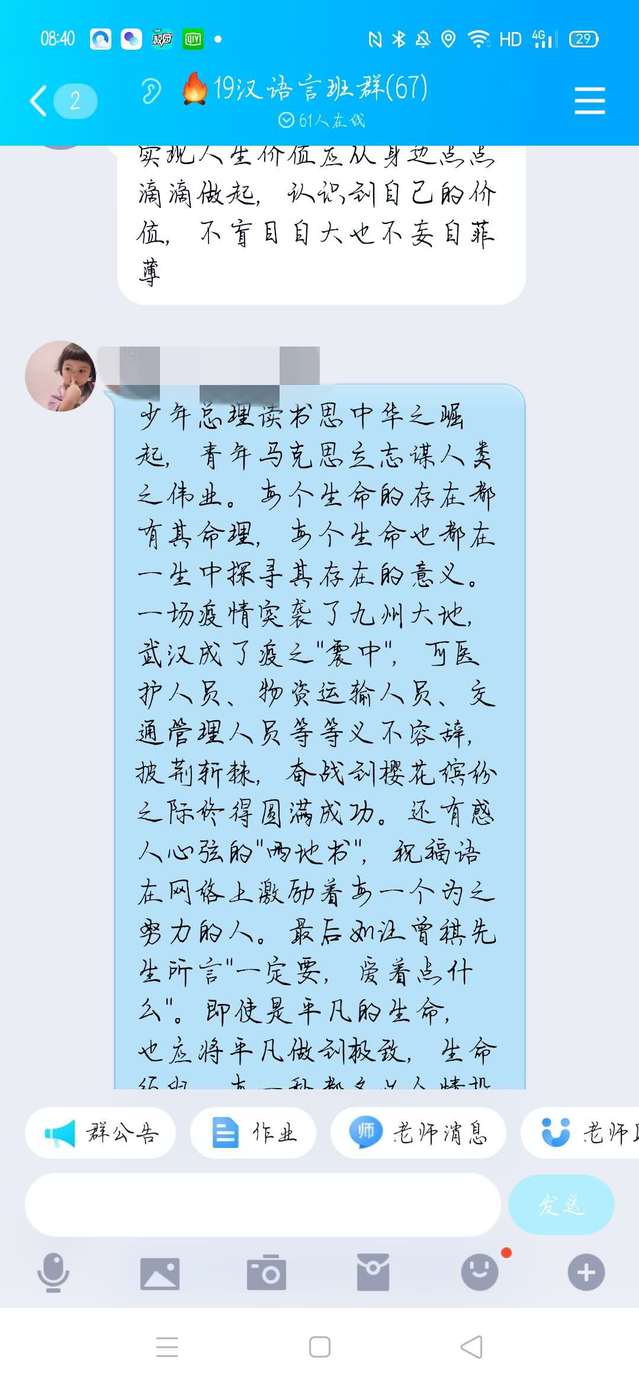19级英语专业同学表示,认识到没有坚韧不拔一如既往地坚持是不能获得成功的,也要向此次疫情中的抗疫英雄们学习,向我校那位“把论文写在大地上的农民教授”学习。
