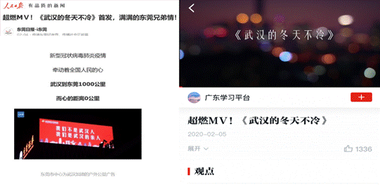 图8 抗“疫”MV获人民日报新闻客户端、学习强国等媒体转发关注