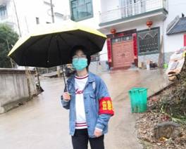 与此同时,另一位共青团员也奋斗在抗“疫”一线。“我是这个村庄土生土长的孩子,让村民安全地度过这一特殊时期是我的义务。我是一名团员,在党员培训时老师说过的‘有担当’三个字深深地刻在我的心里,我有责任用行动去诠释担当二字。”18级法学专业的许艳姿同学这样说道。