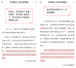 疫情攻坚战的战鼓敲响,在学生党支部的带领下,文法学子以特别的方式为抗疫助力。在日常生活中,文法学子用一张普通的纸,一支普通的笔,亦或是一部普通手机记录下了自己不普通的所见所闻,汇聚成许多闪亮温暖的金句,为疫情防控一线人员送去感动和温暖。“作为普通人,在这样重大疫情的关头,做的不仅仅是保护好自己,也想着贡献自己的力量,作为党员,更应当以身作则,将党旗插在防疫第一线。”这是文法学院2017级的魏燮和同学对疫情防控志愿服务的感触。文法学子所收集的金句来自于不同身份的人,有的来自抗“疫”的一线人员,有的来自普通的群众,但每一位诉说者都时刻铭记并积极响应国家的号召,每句话背后都蕴含着一个感人的抗“疫”故事,每一个故事都展现着全民齐心抵抗疫情的决心。“同学们通过金句分享,让更多的同学明白自己并非这场战役的局外人,要尽力做好自己,肩负起时代使命。”