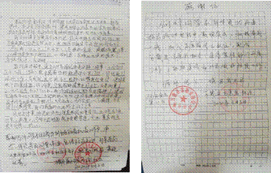 图4 当地社区和志愿者协会给何帅同学的表扬信和感谢信