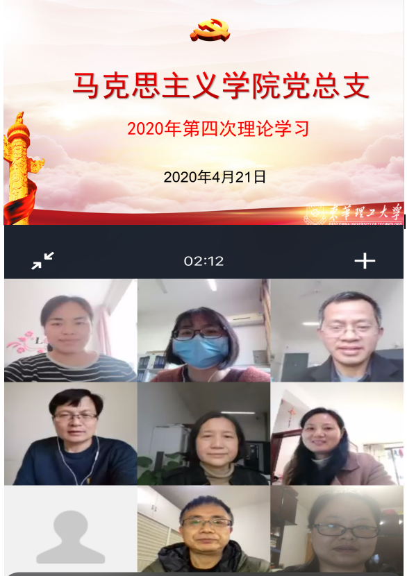 4月21日下午,马克思主义学院党总支采取微信视频会议的形式,组织开展2020年第四次理论学习,中心组全体成员以及学院科级干部参加了视频会议学习,会议由学院党总支书记华启和主持。