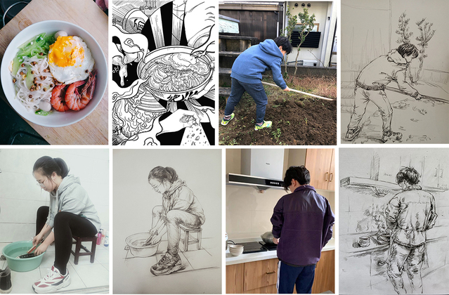 活动受到了同学们积极响应,同学们围绕做个艺德双荣的好孩子、好学生这个主题,主动在家中参加力所能及的劳动,为家里分担家务,在劳动的过程中体会劳动的意义。同时,结合专业,把自己切身经历的劳动场景用画笔进行描绘,创作出一幅幅展示劳动风采的作品,创作形式有手绘作品、漫画组图和海报等。