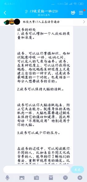 此次读书日活动,学生反响强烈,在班级群内积极发表感想,并针对如何提高阅读能力、交流读书与人生的意义展开了热议。