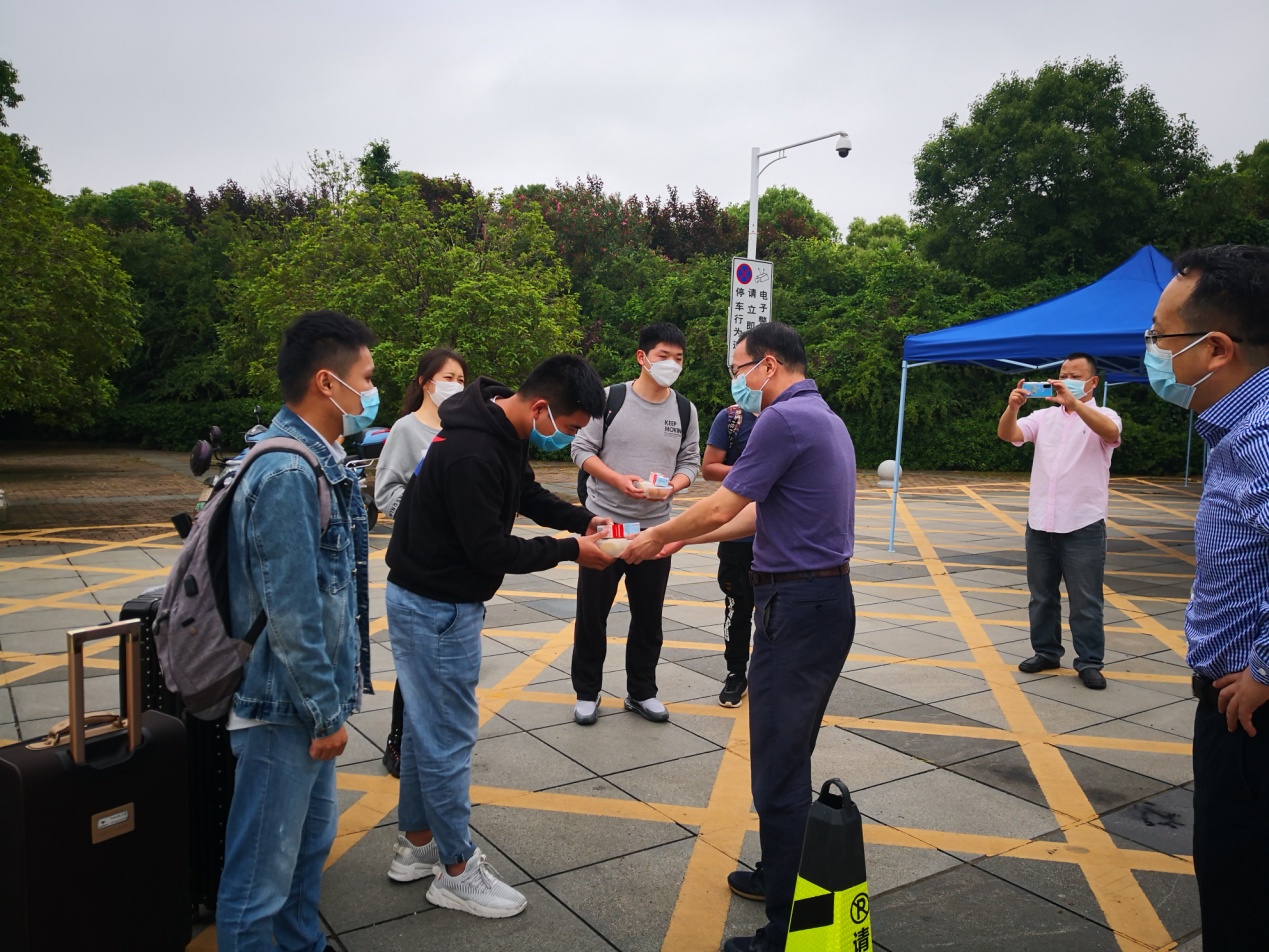 5月6日,研究生院迎来2020年春季学期首批返校研究生。副校长杨波一大早来到现场,检查返校工作准备及开展情况,并为第一批到校的研究生送上了爱心早餐。研究生院党委书记刘峙嵘、院长李满根、副书记王新年等陪同到场,并为返校研究生们送上了学校精心准备的健康包和返校学习指南。