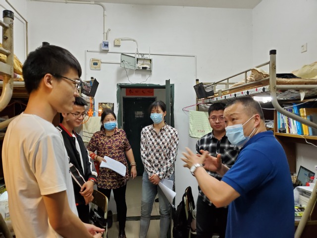 5月7日晚,为进一步配合学校做好校园疫情防控工作,加强毕业生宿舍管理,保障学生的生命安全和身体健康。化生材学院副书记马建国带领学工团队深入学生宿舍,全面摸排毕业生返校情况,开展毕业生返校宿舍安全检查工作。