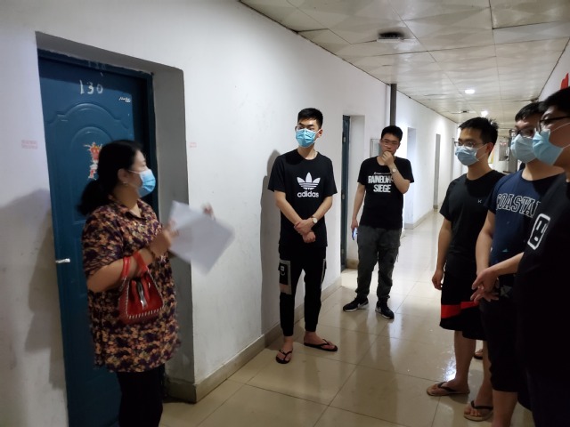 在宿舍安全检查过程中,老师们仔细地核对每一个寝室毕业生的返校信息,并通过和学生亲切交流了解学生们的假期思想动态、考研复试情况和生活情况等。其中马书记对学生提出以下几点要求:一是在校期间严禁通过任何违规手段进出校园,有突发问题及时联系辅导员和班主任;二是不订外卖,在学校食堂就餐时,要一人一桌,最好自带饭盒打包回宿舍食用;三是每天早晚坚持检测体温,并严格登记汇报,发现体温异常时,要及时向学院反馈。
