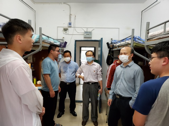 陈焕文强调,寝室是学生聚集最多的场所,寝室的疫情防控工作一定不能掉以轻心。要求学院全面准确掌握每一个学生的健康信息,全面摸清学生的旅居史、接触史等情况,确保不漏一人;并以做好疫情防控为契机,增强学生的自我防护意识和能力,积极引导学生养成爱干净、讲卫生的良好习惯;一旦学生出现异常情况,要及时按照相关要求,做好隔离、送检等相关工作,确保学校疫情防控万无一失。