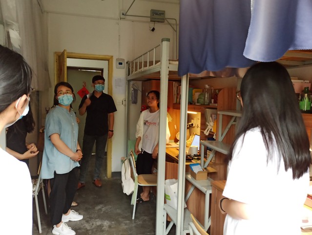 在离开之际,领导老师们还给同学们提出了几点建议:一是严格遵守疫情防控期间学生宿舍管理规定,做好疫情防控的相关工作;二是保持好个人的良好习惯,保持良好的心态,合理饮食、荤素搭配;三是疫情期间要做好自己的学业规划。