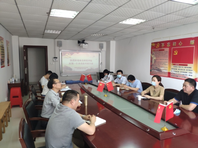 5月18日上午,南昌师范学院组织部部长高翔、团委书记徐辉、文学院党委书记蔡卫文等一行7人来我院就党建工作进行了考察交流。学院党委书记余修日、副书记马建国、党支部书记、辅导员等相关老师在核工楼510会议室与高翔一行进行座谈。