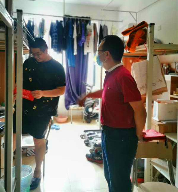 5月20日下午,研究生院党委书记刘峙嵘、副书记王新年等来到研究生宿舍看望慰问返校研究生,并为近期返校后未及时领取的同学送上了学校精心准备的“防疫健康包”和研究生院准备的防疫物资。