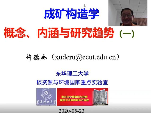 5月23日上午,第七期青年矿床学家网络论坛如期举行。来自中国科学院地质与地球物理研究所、中国科学院广州地球化学研究所、中国科学院地球化学研究所、南京大学、中国地质大学(武汉)、中国地质大学(北京)、东华理工大学、合肥工业大学、昆明理工大学、河北地质大学、桂林理工大学、加拿大滑铁卢大学等国内外数十所高校的近500名专家、学者通过Zoom网络会议软件汇聚一堂,开展国际矿床学及其研究进展的学术交流,我校地球科学学院院长许德如教授应邀参加了本次论坛,并做特邀报告。本次网络会议由南京大学吴昌志教授主持,我校地球科学学院和核资源与环境国家重点实验室的数十位教师也同时参与了本次网络论坛的交流与讨论。