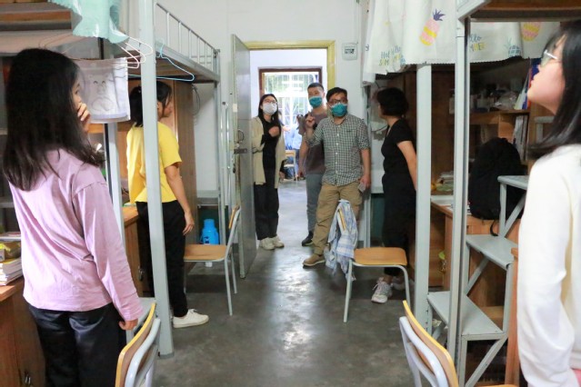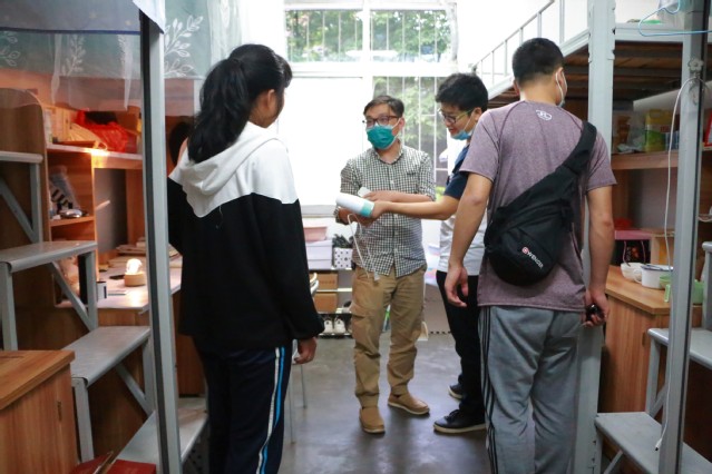 5月26日下午,师范学院组织全体辅导员深入学生宿舍开展疫情防控期间学生宿舍安全隐患排查工作活动,按照“开窗对流通风,拔掉插在插座上的手机充电器、台灯,清理水果、食物等容易腐烂变质的物品,检查门窗玻璃安全”等程序,全面核查学生宿舍存在的安全隐患、卫生和维修情况,切实加强宿舍安全管理和各项工作规范。