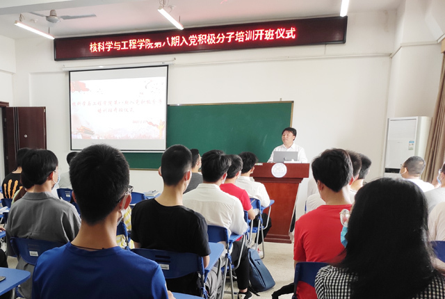 5月27日上午,核科学与工程学院第八期入党积极分子党课培训班开班仪式在地学楼C503会议室举行。学院党委书记余斌、副书记刘顺祥,辐射与核化工联合学生党支部书记刘春元、核工学生党支部书记周勇及入党积极分子共计40余人参加开班仪式。