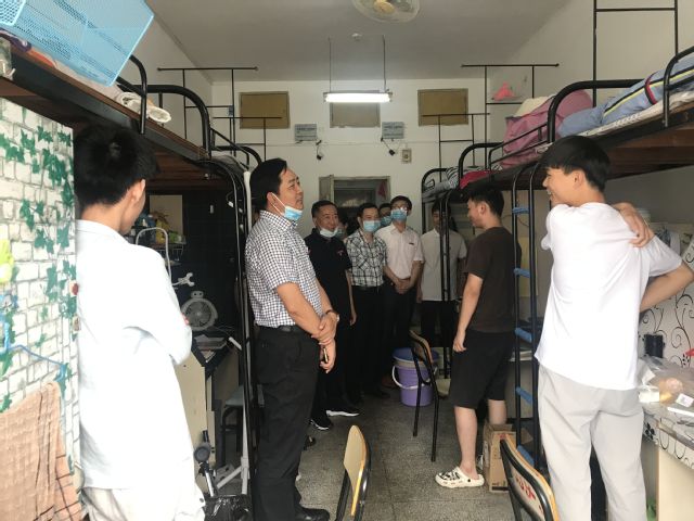 5月28-29日,东华理工大学长江学院院党委书记陈泉水、院长邹自力、院党委副书记陈凌、副院长陈坚一行先后来到学府校区、玉茗校区学生宿舍,看望慰问了返校学生和复学工作学生志愿者们,亲切地问候返校同学,详细了解他们返校后的生活、就餐、线上学习等情况;走访了学生党员值班室、心理咨询室、学生食堂等地,查看疫情防控返校工作落实情况。