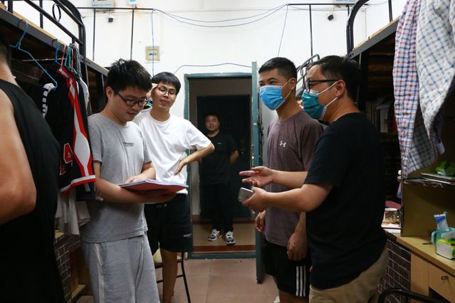 在走访中老师们仔细了解毕业生们返校后的生活情况、思想动态、寝室卫生状况以及学业情况,询问了毕业生在校生活、办理各项毕业手续、升学就业等方面面临的困难,检查了毕业生们对防控措施的落实情况。在了解上述情况后,并叮嘱同学们疫情防控期间做好自身防护工作并遵守学校防控期间的相关管理要求,要严格落实“网格化管理体系”措施,坚持做好“晨午晚”体温检测工作,要按照学院规定走完毕业离校程序,如遇困难及时与辅导员、班主任及相关老师沟通联系。