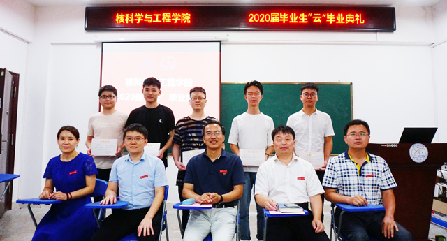 余斌宣读了核工学院2020届毕业生优秀毕业生名单和2020届毕业生校友理事名单。学院领导共同为优秀毕业生、毕业生校友理事颁发了荣誉证书并合影留念。
