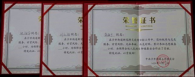 在疫情防控取得阶段性胜利的时候,离退休党委所属第七党支部的7名老党员受到中共南昌市红谷滩新区沙井街道工作委员会的表彰。“在沙井街道新冠肺炎疫情防控工作中,您积极参与志愿服务,甘冒风险,无私奉献,共克时艰,为保障人民的生命健康安全作出了贡献”,一本本红彤彤的荣誉证书,记录的是老党员不屈无畏的抗疫精神,彰显的是不忘初心、牢记使命的共产党员本色。