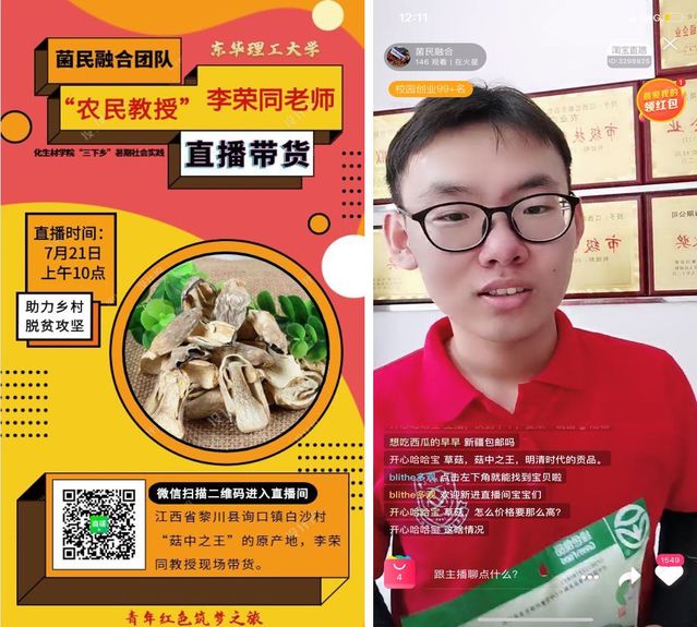 此次线上直播带货,将众多优质农产品搭上“互联网+”的东风,开创了“特色农业+乡村旅游+电商扶贫”的新模式。情系乡村,助力脱贫。东华理工大学化生材院“菌”民融合团队将持续研发新菌种、完善直播带货体系,将脱贫致富的成效写满祖国大地。