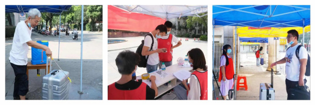 此次开学实行错峰返校,时间为9月1日至9月4日。期间,东华理工大学长江学院党委书记陈泉水、院长邹自力、副书记陈凌、副院长陈坚在相关负责人的陪同下,多次视察指导疫情防疫工作安排,查看学生入校流程,询问学生返校情况,关注开学各方面工作的进展,了解返校学生来校方式等情况,并对志愿者表示:“作为防控第一线,你们一定要对各项工作进行严格把关。”也对志愿者的辛苦给予肯定,叮嘱负责人要密切注意志愿者的防暑工作及防护问题,保障志愿者自身健康安全,表现出对我院防疫工作的高度重视,及对广大学子健康安全的深切关怀。