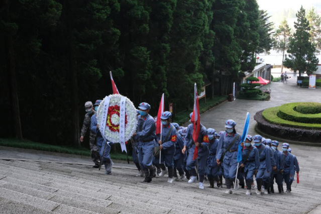 次日清晨,研学队伍早早来到井冈山革命烈士陵园,为革命烈士敬献花圈,表达对革命先烈的崇高敬意和最深切的悼念,并感叹美好生活的来之不易。对此朱颖同学深受感染,并表示道:“岁月能带走一切,而先烈的革命精神是永远夺不走的财富。”随后队伍在团长的带领下参观了烈士博物馆与碑林,并在革命烈士纪念碑下驻足瞻仰,以示对先烈们的深切怀念。