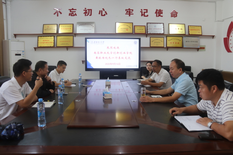 9月16日上午,南昌职业大学创新创业学院黄振传院长一行3人到访学校创新创业教育学院参观交流,学院党总支书记王合义、院长臧德彦接待了黄振传一行并参加了座谈。
