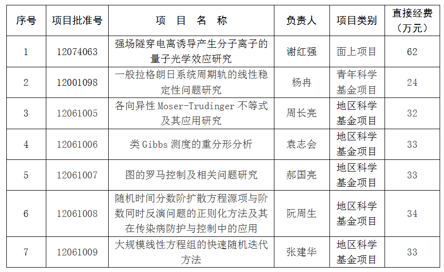 此次我院主持承担面上项目取得零的突破,获批项目的直接经费总额达到历史新高,这对鼓励中青年教师申报国家基金项目,推动数学和物理学科发展起到了积极的促进作用。