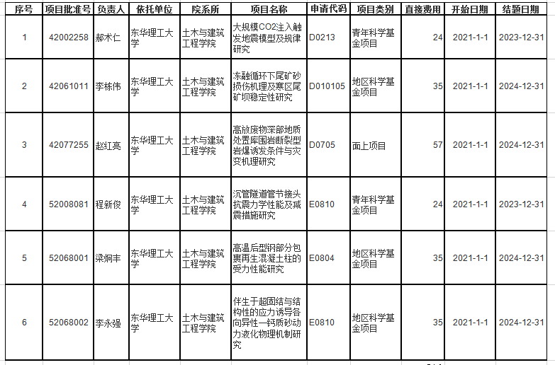 近日,2020年国家自然科学基金项目评审结果公布,我院李栋伟、梁炯丰、赵红亮、郝术仁、李永强、程新俊6位老师研究课题喜获立项,资助经费共计210万元,项目立项详细信息如下: