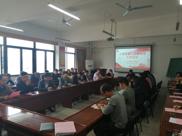 会上,首先举行了全院教师入职宣誓仪式。2019年学院引进的高层次人才查文华教授领誓,全体教师面举起右手,庄严宣誓。随后,进行了师德承诺书的签订活动。