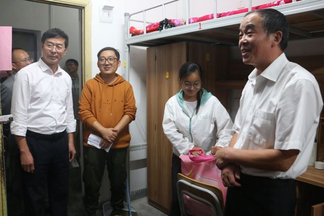 9月22日晚7:00,师范学院党政领导、各系主任、学团办老师、新生班主任、辅导员等一行人深入新生寝室,走访慰问2020级新生。