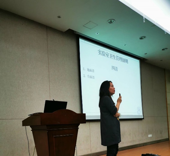 学院实验教学中心杨颖、张子臻、郑瑶玲和邱柳四位老师分别介绍了各自分管的实验室功能、设备特点。并用丰富的图文,向同学们详细介绍了实验室位置分布、功能及实验设备参数、实验准备及设备维护细则、实验室日常管理规定及申报使用流程、实验室安全卫生管理细则等展开了详实细致的宣讲。