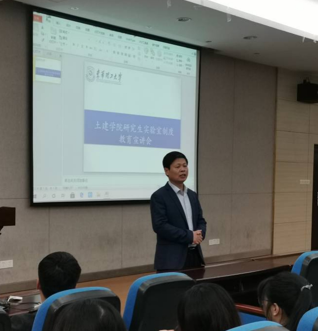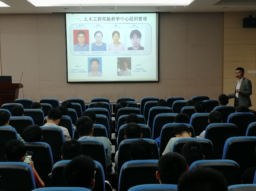 为了更好的服务研究生教学科研工作,科学合理利用学院实验教学中心实验资源,土木与建筑工程学院实验教学中心于9月28日下午14时30分在地学楼C1阶梯教室举行研究生实验室制度教育宣讲会。土建学院副院长易萍华、副院长梁炯丰、研究生辅导员袁昌、学院实验教学中心全体教师以及土建学院研一研二全体研究生参加了此次宣讲会。
