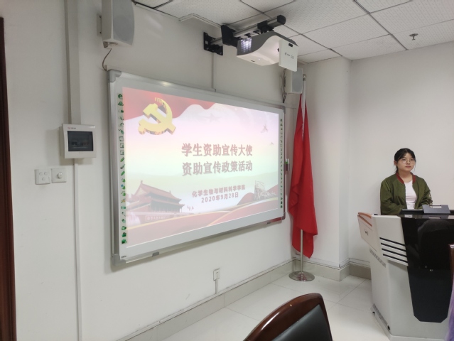 9月28日下午,化生材学院2020年“学生资助宣传大使”资助政策宣传活动在核工楼510会议室开展。活动由学院“学生资助宣传大使”黄小翠主持宣讲,2020级各班班长、生活委员和团支书参加此次活动。