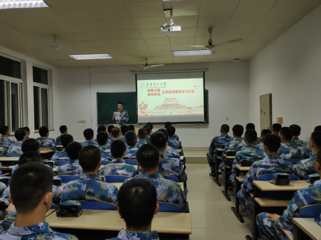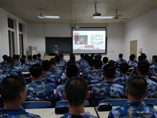 青春力量,青年担当,为致敬英雄,弘扬榜样力量, 10月14日,国防教育学院组织全体师生学习了驻金华73132部队61分队下士班长王亮同志先进事迹。学院全体老师及18级、19级、20级海军定向培养士官参加,学院党政负责人、院长赵克锋参会。
