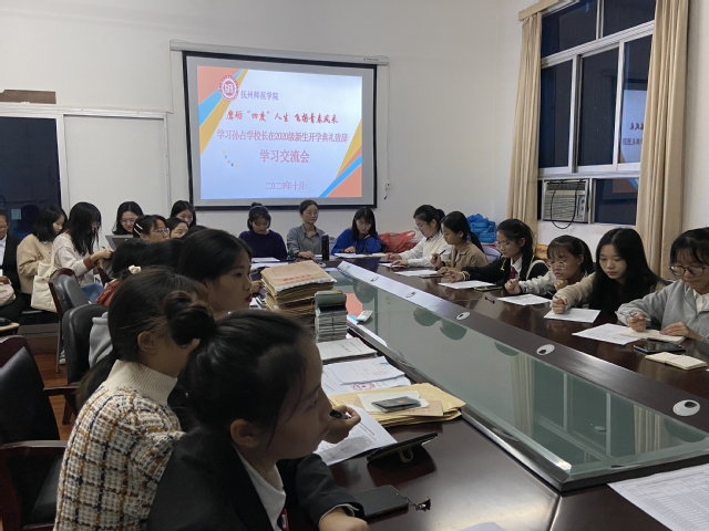 10月16日晚8点,师范学院在抚州校区学府校园行政楼435会议室召开“孙占学校长在2020级新生开学典礼致辞”学习交流会。学院各年级学生代表30余人参加交流会。会议由学院学团办孔令军老师主持。