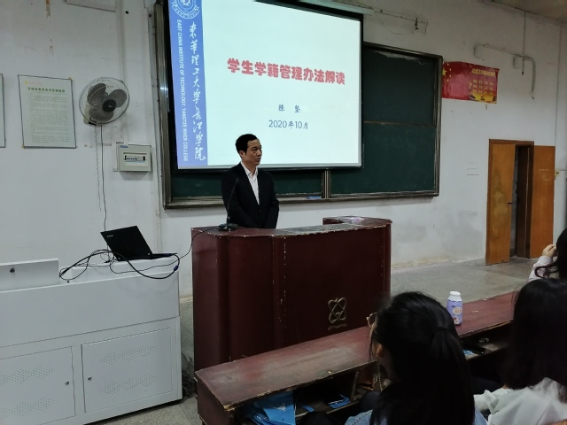 10月16日,机电系邀请了长江学院副院长陈坚开展了一次《学籍管理教育》讲座。陈坚院长从入学注册、课程考核、学位获得等九个方面详细介绍了学校的学籍管理相关制度,并向大家说明了如何办理补考、重修和缓考等相关手续,强调了学习纪律和考试纪律等红线。