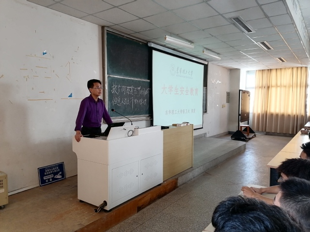 10月12日下午,机电系邀请了东华理工大学保卫处副处长周夏上了一堂《大学生安全教育》课。周夏处长结合自身多年工作经验,从交通、网络、消防、财产、国家安全等方面教育大家如何保证生命、身体、名誉、财产免受外部侵害。讲解时,周夏处长利用大学生身边的案列,图文并茂向大家展示常见的安全隐患。