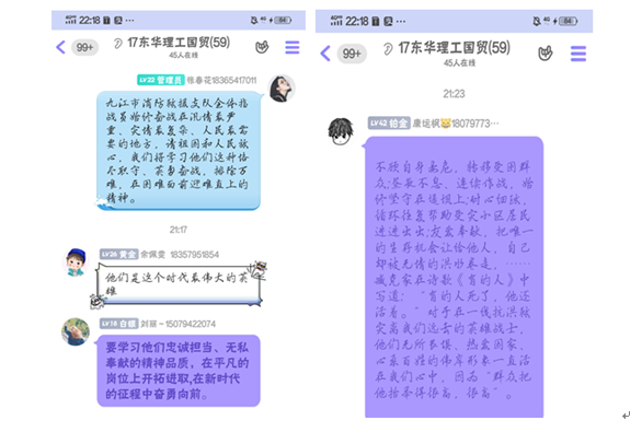 观看后,大家踊跃进行发言交流。机电系党员王凯杰同学说:在今后的工作和学习中将以先进典型为榜样,自觉做到以人民为上、以奋斗为荣,不忘初心、牢记使命,不断加强党性,在务实干事上提高标准,在工作中发挥模范带头作用。大家纷纷表示作为当代大学生,我们要从中学习,担起时代的大任,努力成为祖国的栋梁。