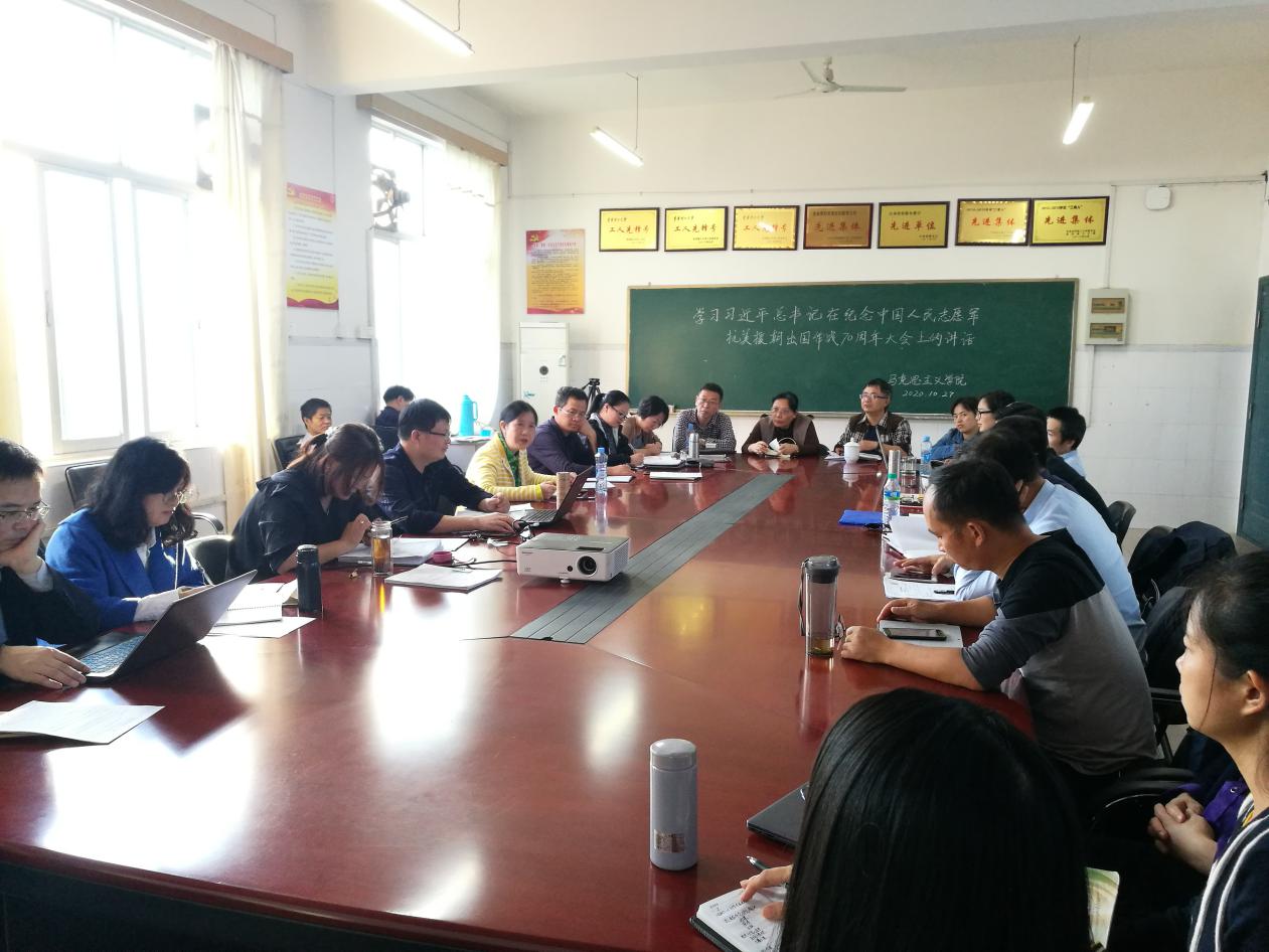 10月27日下午,马克思主义学院组织全体教师在测绘楼505会议室学习习近平总书记在纪念中国人民志愿军抗美援朝出国作战70周年大会上的重要讲话精神。