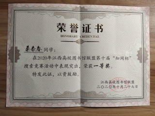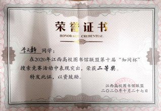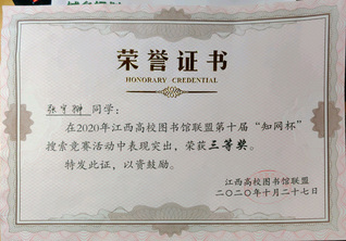 江西高校图书馆联盟“知网杯”搜索竞赛自2011年举办以来,今年已是第十届,主要考核读者对图书馆数据库资源和网络资源的检索技能,充分利用好图书馆数字资源。通过准备搜索比赛,学生学到了很多数据库与互联网的搜索技巧,大力提升了信息检索与利用能力。(图/许德如 文/谢涛锋)