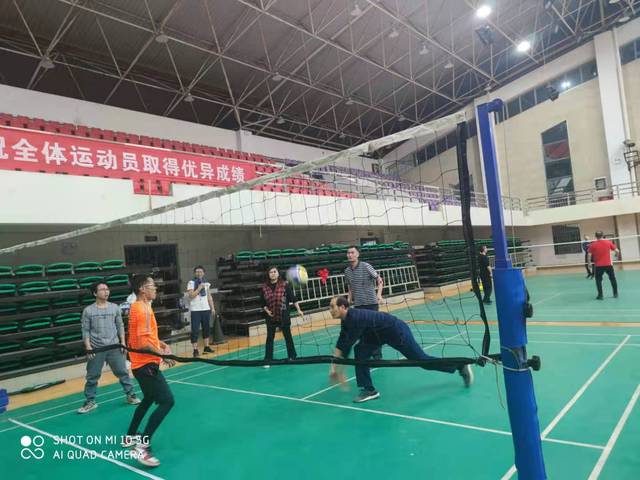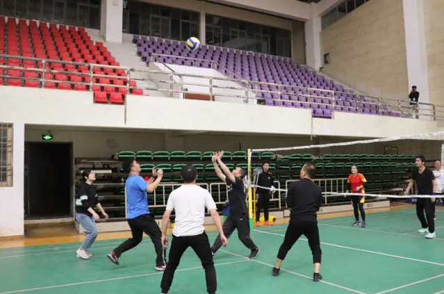 赛场上,队员们精神抖擞,身姿矫健,时而鱼跃救球,时而跳起扣杀,配合完美,精彩瞬间交迭呈现,整场比赛**不断。场下教工学生观众热情高涨,助威声、欢呼声,呐喊声不绝于耳,气氛文明热烈。经过15场的单循环赛后,激烈的比赛缓缓拉下帷幕。机关代表队五场比赛全胜荣获冠军、应用与工程系代表队获得亚军、人文与艺术系代表队获得季军。
