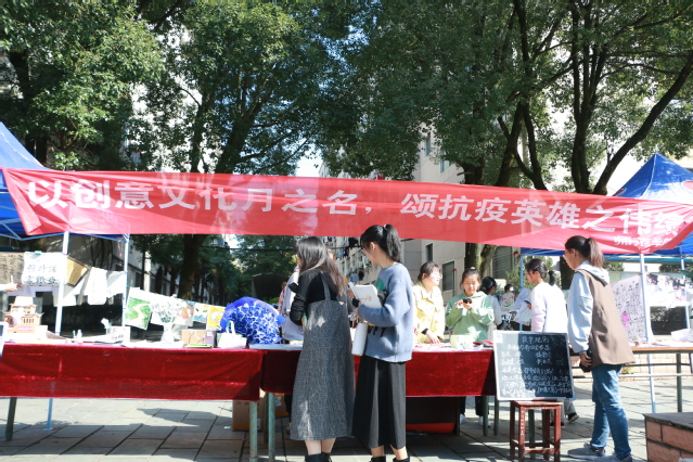 为进一步丰富校园文化生活,展现大学生青春风采,致敬抗疫英雄,11月9日至10日,师范学院开展了主题为“以创意文化月之名,颂抗疫英雄之伟绩”的创意文化月作品展。